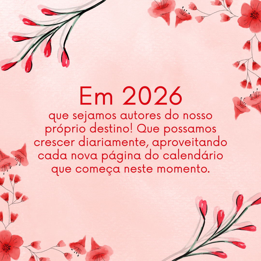 Em 2026, que sejamos autores do nosso próprio destino! Que possamos crescer diariamente, aproveitando cada nova página do calendário que começa neste momento.