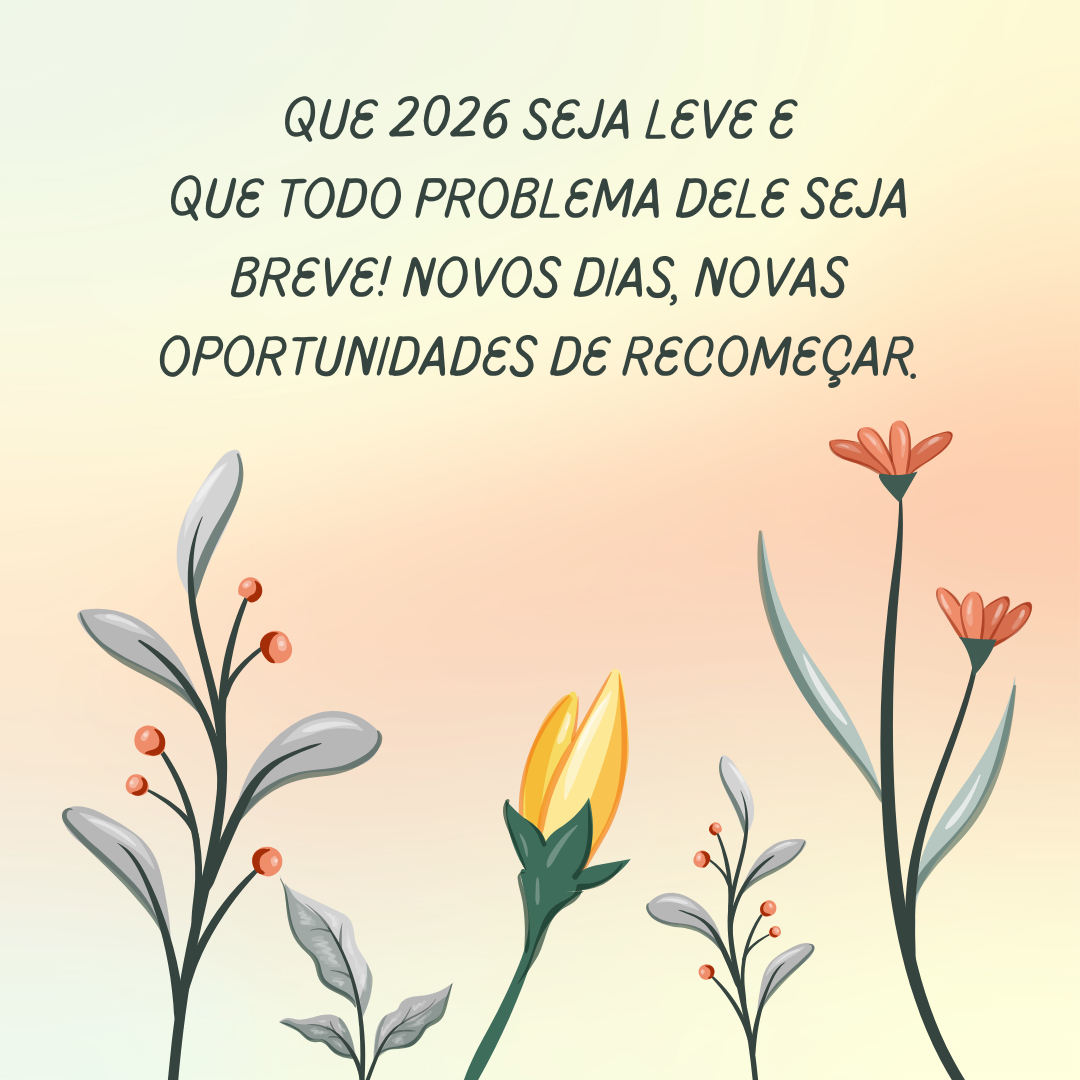 Que 2026 seja leve e que todo problema dele seja breve! Novos dias, novas oportunidades de recomeçar.