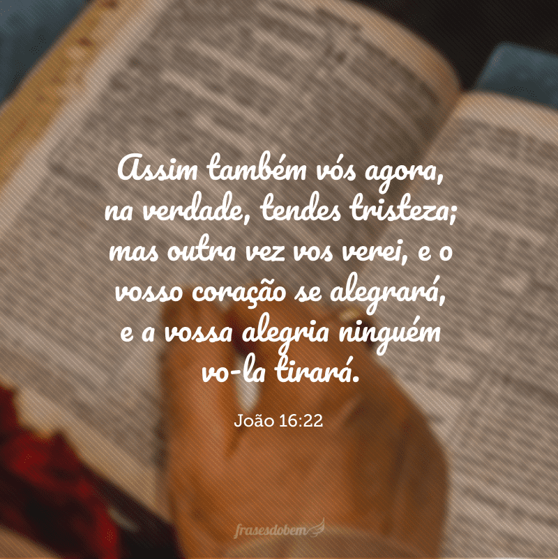 Assim também vós agora, na verdade, tendes tristeza; mas outra vez vos verei, e o vosso coração se alegrará, e a vossa alegria ninguém vo-la tirará.