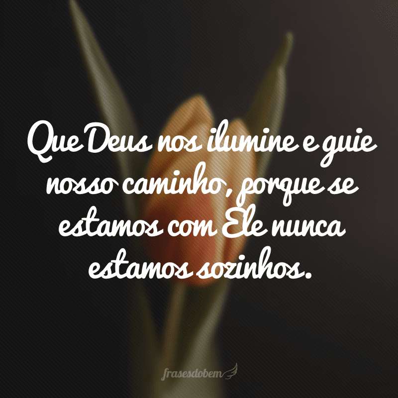 Que Deus nos ilumine e guie nosso caminho, porque se estamos com Ele nunca estamos sozinhos.