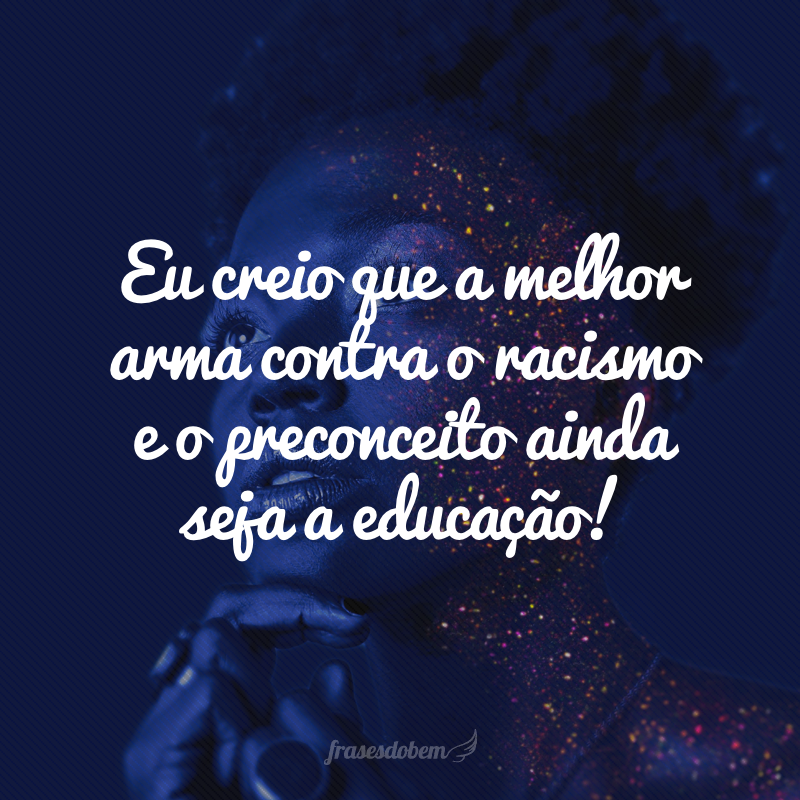 Eu creio que a melhor arma contra o racismo e o preconceito ainda seja a educação!