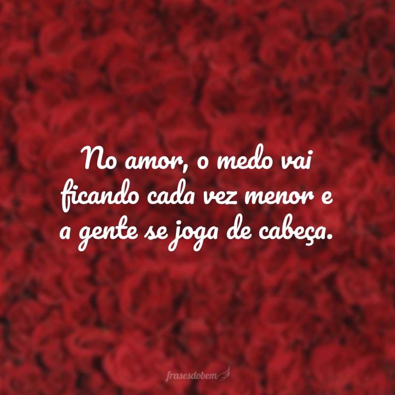 No amor, o medo vai ficando cada vez menor e a gente se joga de cabeça.