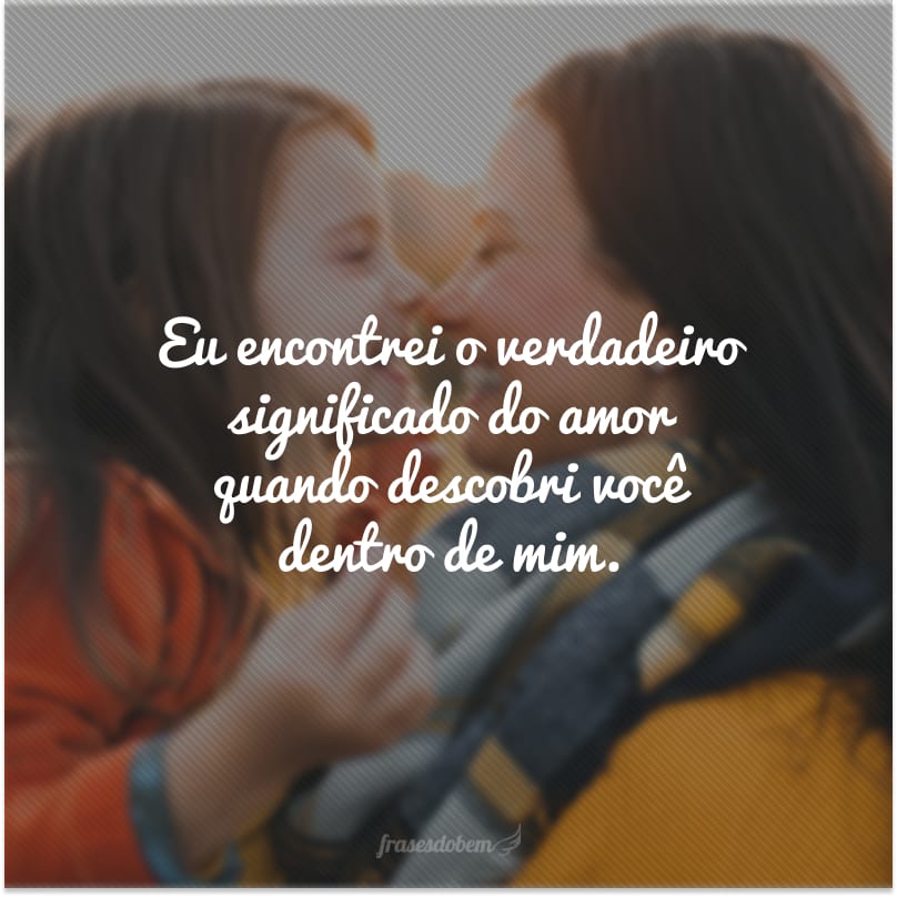 Eu encontrei o verdadeiro significado do amor quando descobri você dentro de mim.