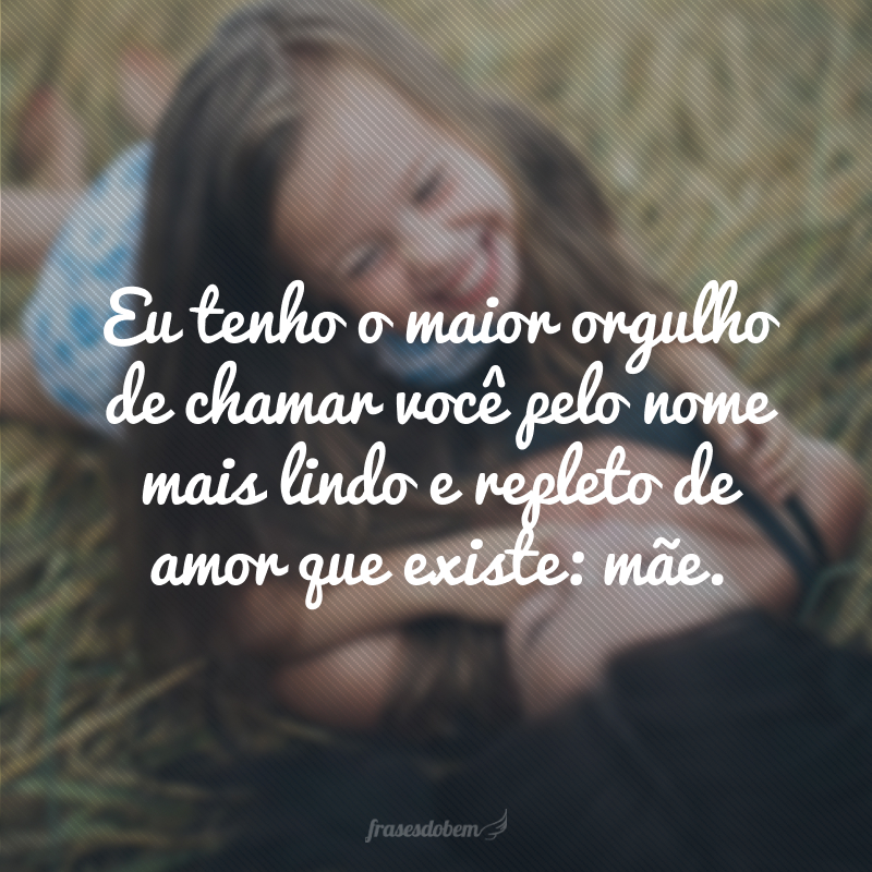 Eu tenho o maior orgulho de chamar você pelo nome mais lindo e repleto de amor que existe: mãe.