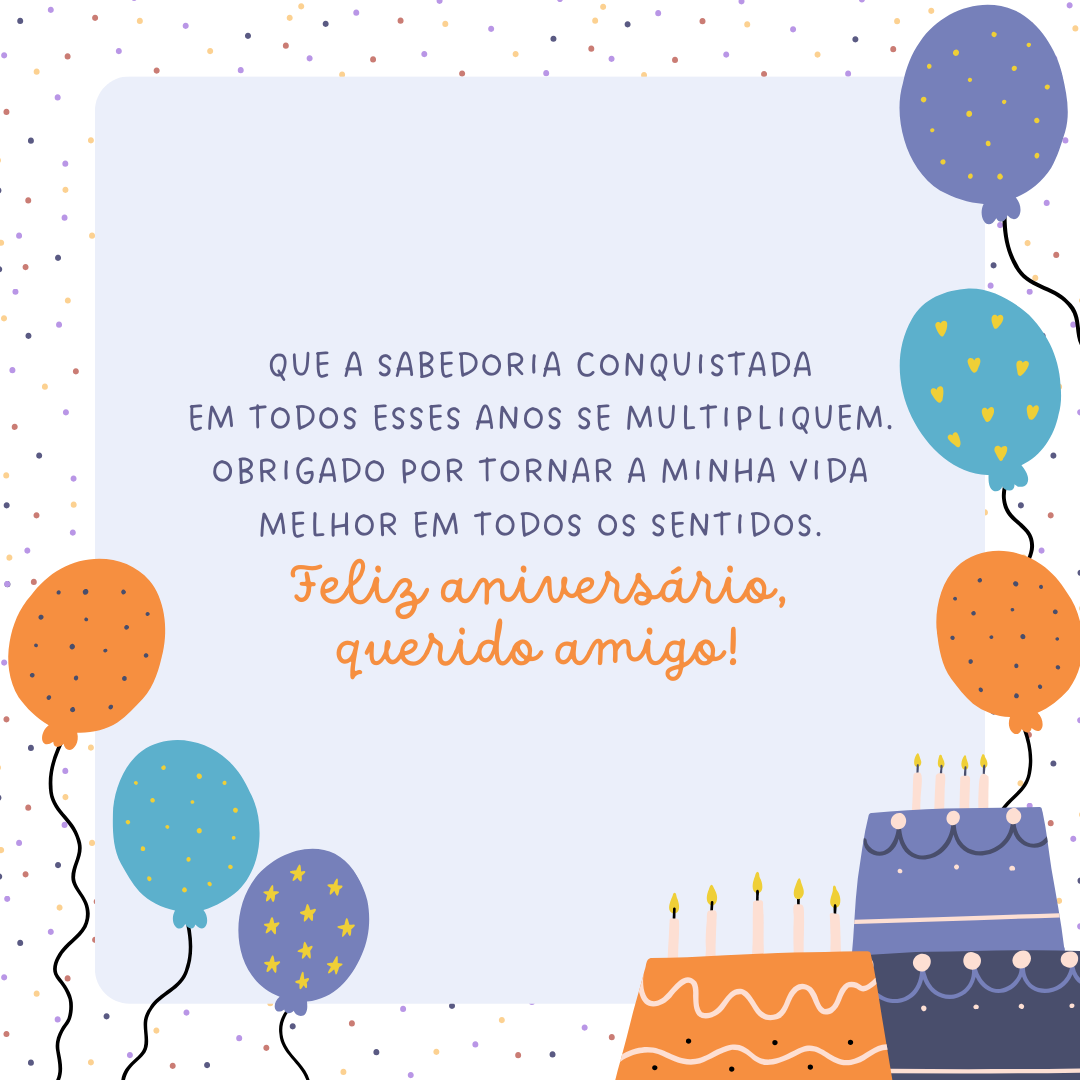 Que a sabedoria conquistada em todos esses anos se multipliquem. Obrigado por tornar a minha vida melhor em todos os sentidos. Feliz aniversário, querido amigo!