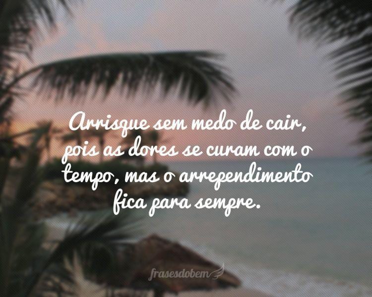 Arrisque sem medo de cair, pois as dores se curam com o tempo, mas o arrependimento fica para sempre.