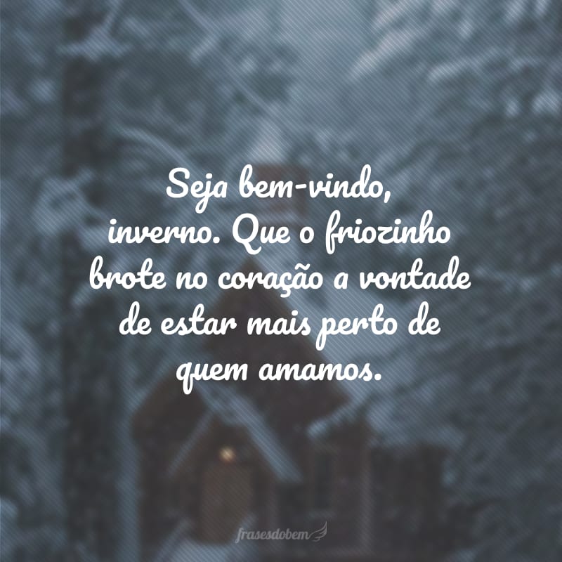 Que o inverno traga paz e não apague o calor dos nossos corações. Seja bem-vindo!