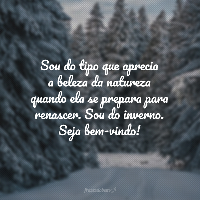 Os dias quentes estão contatos! Afinal, o inverno está chegando para mudar o clima. Essa estação divide opiniões, mas é consenso que precisa-se de muito amor, chocolate quente e comidas gostosas para se aquecer. Se você estava esperando pelo frio, fique feliz porque ele chegou! Receba-o com as melhores frases de bem-vindo, inverno.