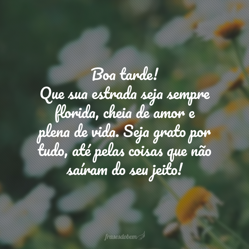 Boa tarde! Que sua estrada seja sempre florida, cheia de amor e plena de vida. Seja grato por tudo, até pelas coisas que não saíram do seu jeito!