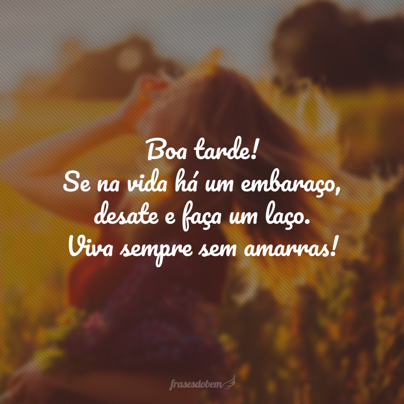 Boa tarde! Se na vida há um embaraço, desate e faça um laço. Viva sempre sem amarras!