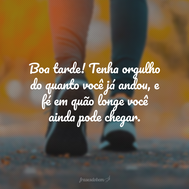 Boa tarde! Tenha orgulho do quanto você já andou, e fé em quão longe você ainda pode chegar.