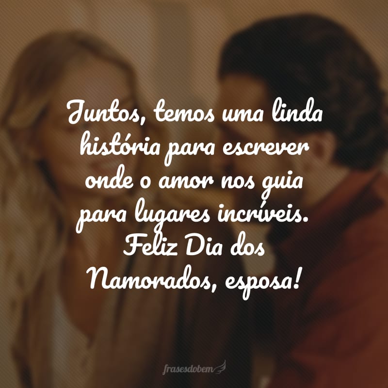 Juntos, temos uma linda história para escrever onde o amor nos guia para lugares incríveis. Feliz Dia dos Namorados, esposa!