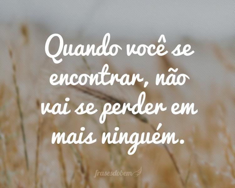 Quando você se encontrar, não vai se perder em mais ninguém.