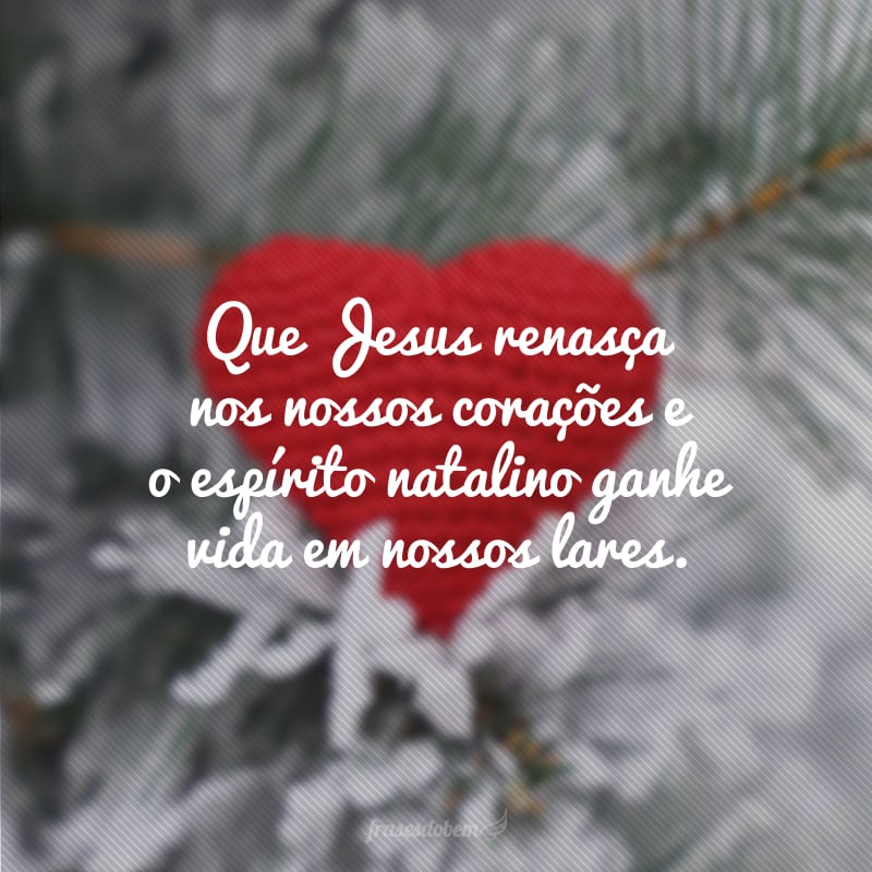 Que Jesus renasça nos nossos corações e o espírito natalino ganhe vida em nossos lares.