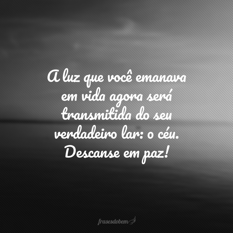 A luz que você emanava em vida agora será transmitida do seu verdadeiro lar: o céu. Descanse em paz!