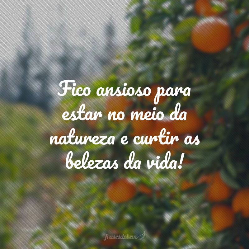 Fico ansioso para estar no meio da natureza e curtir as belezas da vida!