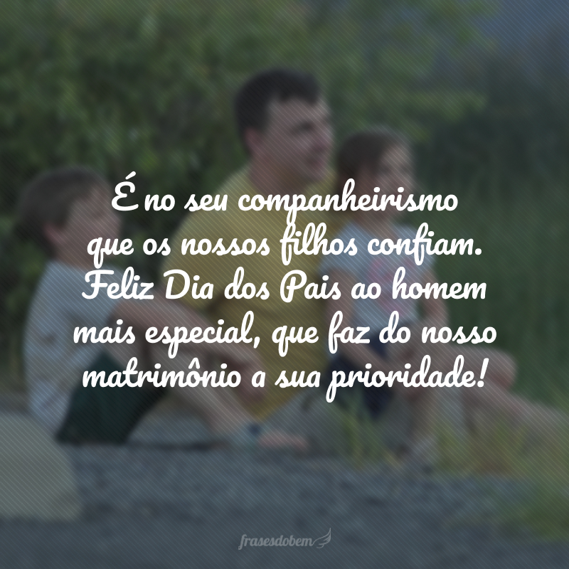 É no seu companheirismo que os nossos filhos confiam. Feliz Dia dos Pais ao homem mais especial, que faz do nosso matrimônio a sua prioridade!