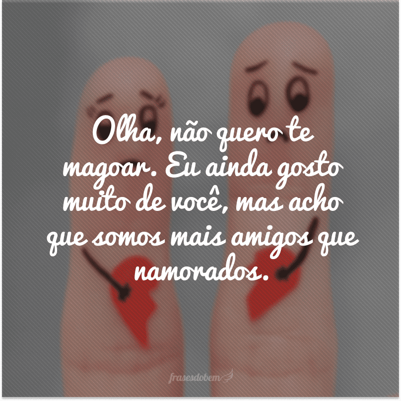 Olha, não quero te magoar. Eu ainda gosto muito de você, mas acho que somos mais amigos que namorados.
