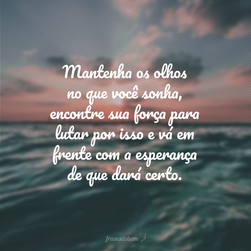 Mantenha os olhos no que você sonha, encontre sua força para lutar por isso e vá em frente com a esperança de que dará certo.