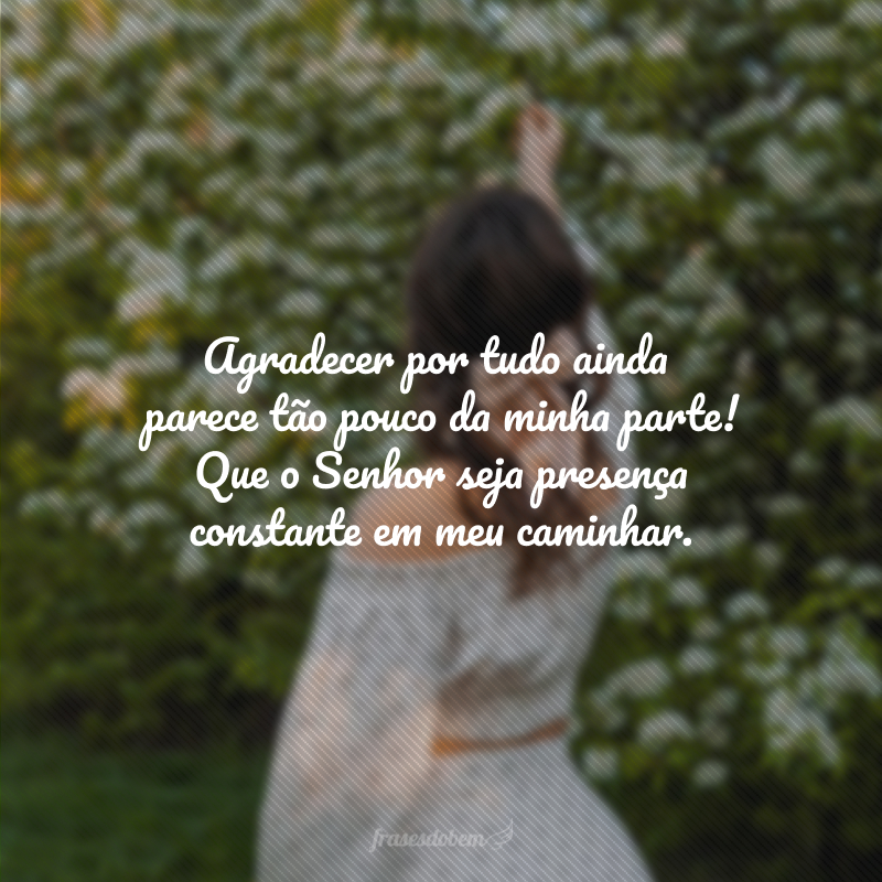 Agradecer por tudo ainda parece tão pouco da minha parte! Que o Senhor seja presença constante em meu caminhar.