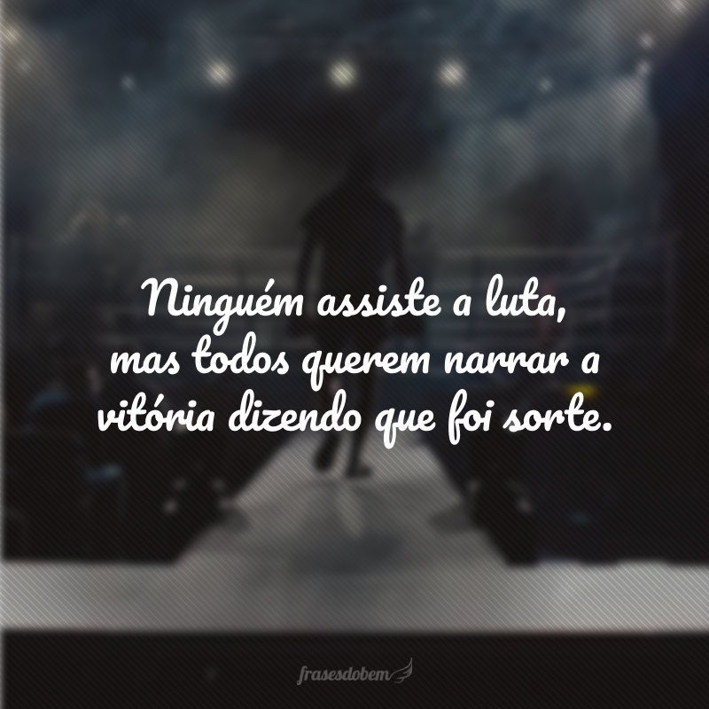 Ninguém assiste a luta, mas todos querem narrar a vitória dizendo que foi sorte.