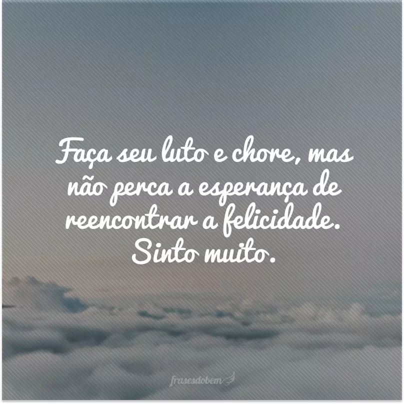 Faça seu luto e chore, mas não perca a esperança de reencontrar a felicidade. Sinto muito.