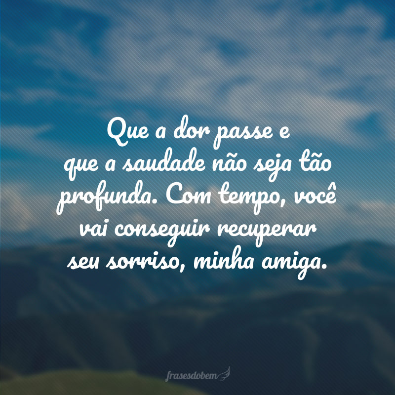 Que a dor passe e que a saudade não seja tão profunda. Com tempo, você vai conseguir recuperar seu sorriso, minha amiga.