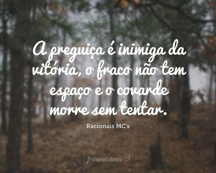 A preguiça é inimiga da vitória, o fraco não tem espaço e o covarde morre sem tentar.