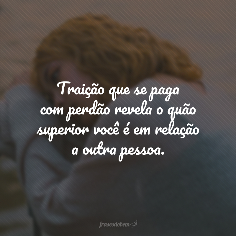 Traição que se paga com perdão revela o quão superior você é em relação a outra pessoa.
