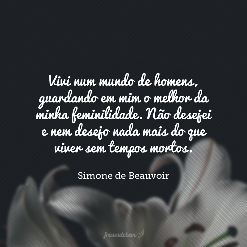 Vivi num mundo de homens, guardando em mim o melhor da minha feminilidade. Não desejei e nem desejo nada mais do que viver sem tempos mortos.