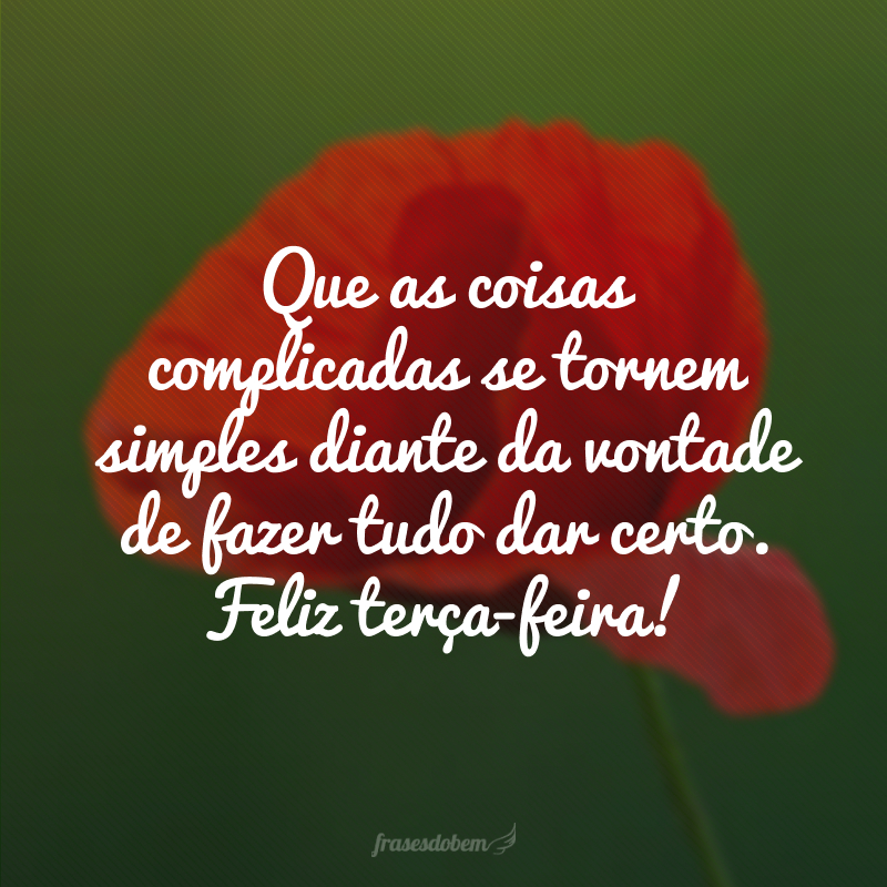 Que as coisas complicadas se tornem simples diante da vontade de fazer tudo dar certo. Feliz terça-feira!