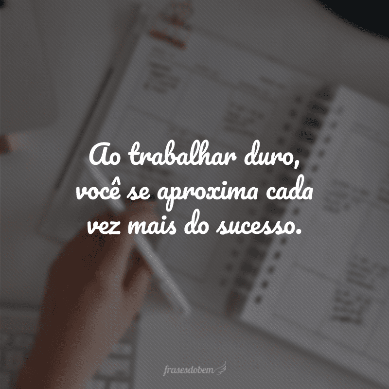 Ao trabalhar duro, você se aproxima cada vez mais do sucesso.