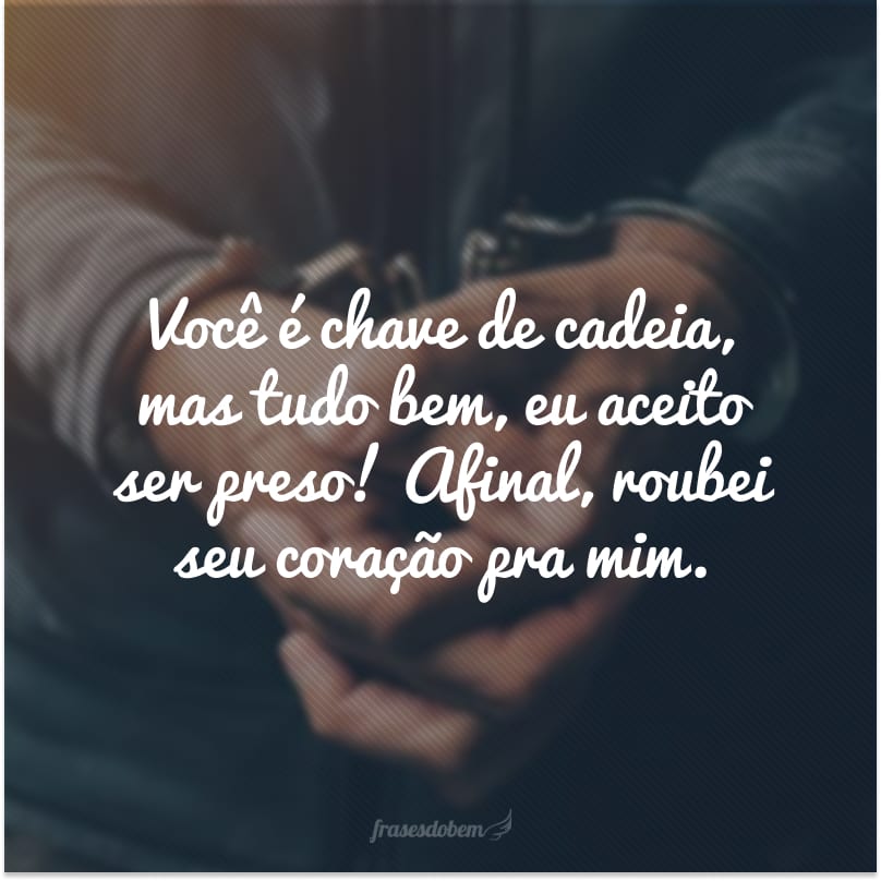 Você é chave de cadeia, mas tudo bem, eu aceito ser preso! Afinal, roubei seu coração pra mim.