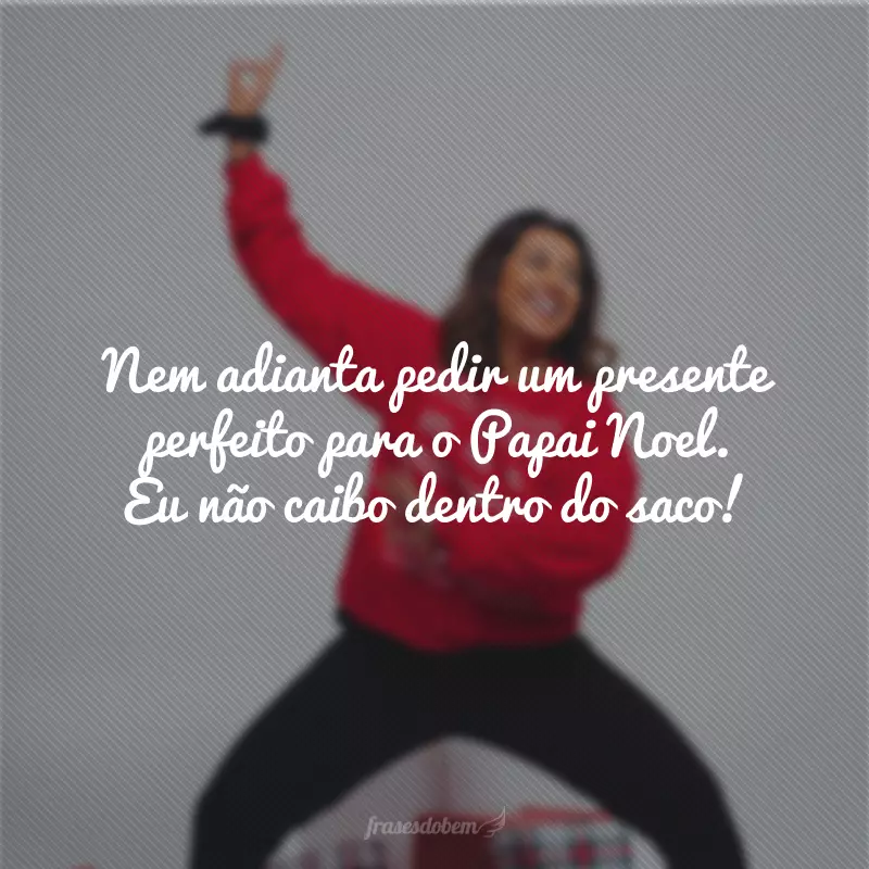 Nem adianta pedir um presente perfeito para o Papai Noel. Eu não caibo dentro do saco!