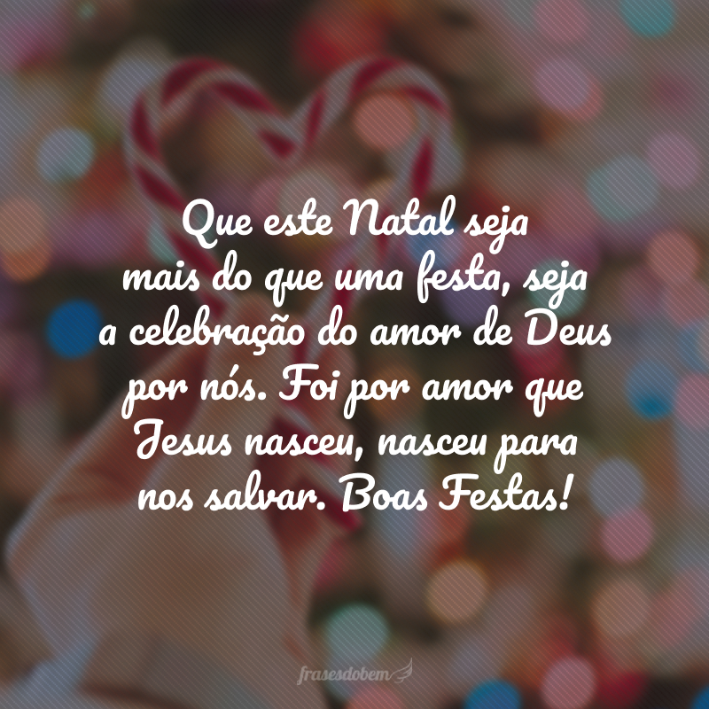 Que este Natal seja mais do que uma festa, seja a celebração do amor de Deus por nós. Foi por amor que Jesus nasceu, nasceu para nos salvar. Boas Festas!