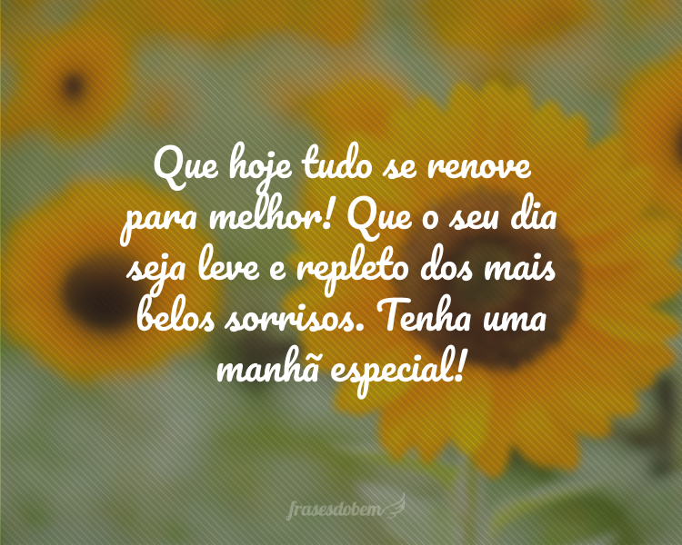 Comece o dia com mais leveza que ontem, mais gratidão pelo hoje e mais esperança para amanhã. Que Deus abençoe o seu dia com fé e coragem de seguir em frente!