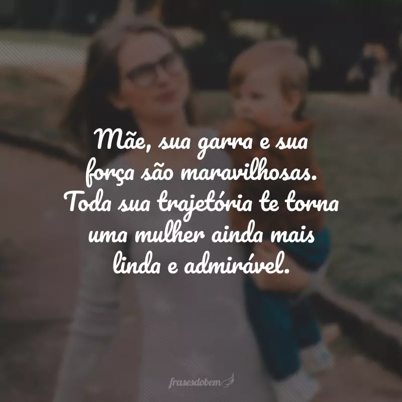 Mãe, sua garra e sua força são maravilhosas. Toda sua trajetória te torna uma mulher ainda mais linda e admirável.