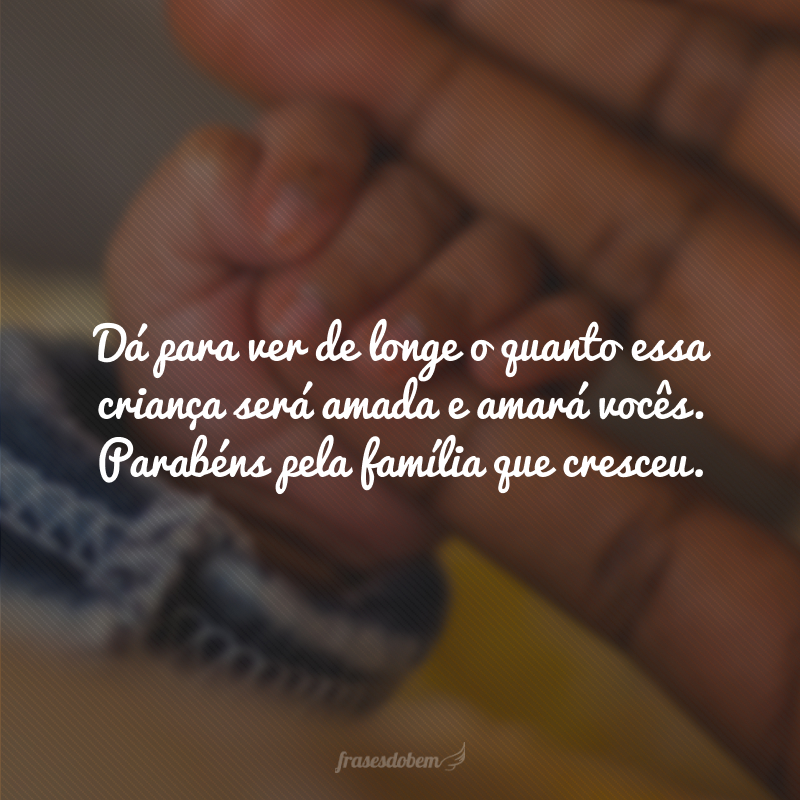 Dá para ver de longe o quanto essa criança será amada e amará vocês. Parabéns pela família que cresceu.