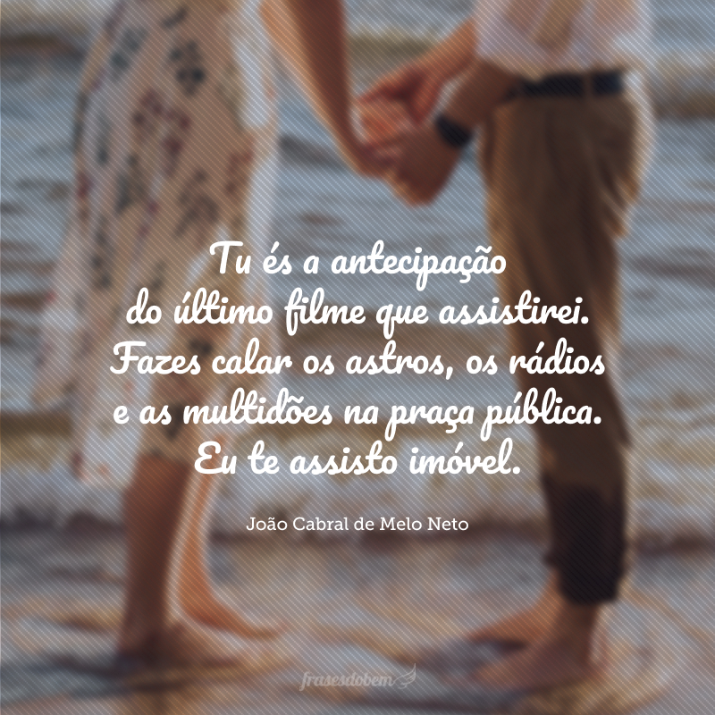 Tu és a antecipação do último filme que assistirei. Fazes calar os astros, os rádios e as multidões na praça pública. Eu te assisto imóvel.